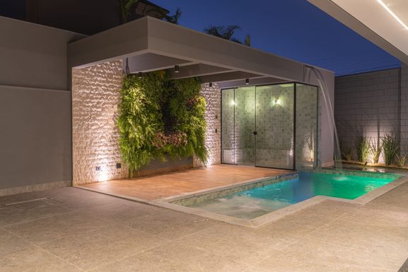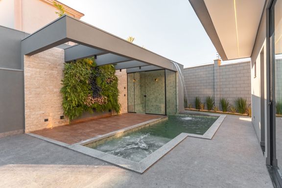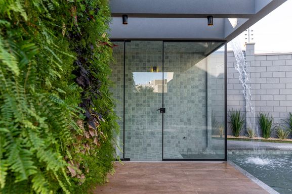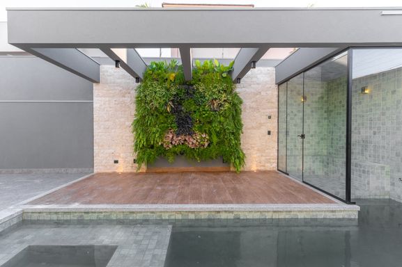* **Jardim vertical** com irrigação automatizada