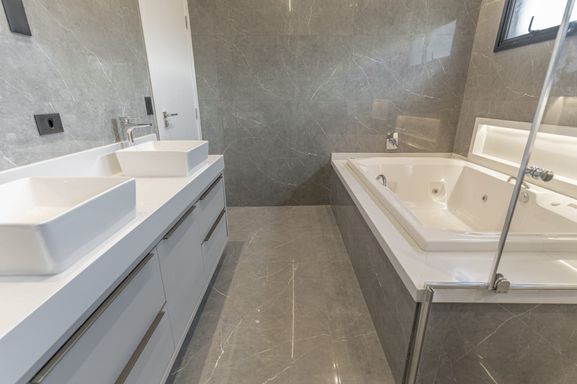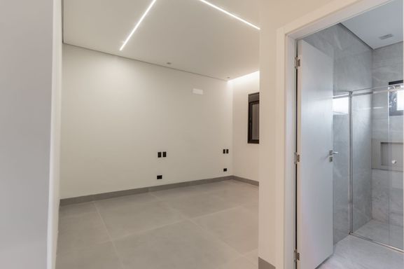 * **Suíte master** com varanda, camarim, banheiro com banheira e cuba dupla